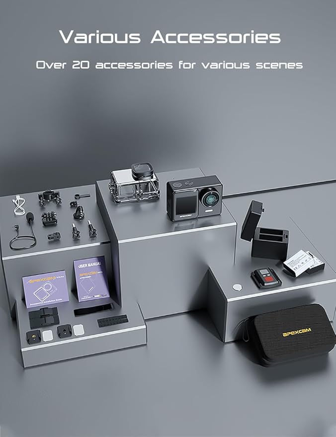 • 📸【4K Ultra HD Video & 20MP Photo】Features professional 4K 30fps & 2.7K 60fps video with 20MP photos, Apexcam X70PRO 4K action camera can help you record the outdoor world clearly and bring you a great experience. It's also an amazing gift for your family and friends.