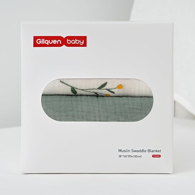 GLLQUEN BABY 2-Pack Muslin Swaddle Blankets for Unisex, Baby Swaddle Blanket for Boys and Girls, Soft Breathable Receiving Blankets Neutral, Newborn Essentials, Registry & Gift, 40 x 38 inches
