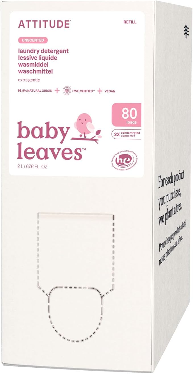 ATTITUDE Baby Laundry Detergent, EWG Verified, Plant and Mineral-Based Formula, HE Compatible, Vegan Household Products, Unscented, 80 Loads, 67.6 Fl Oz (Package may vary)