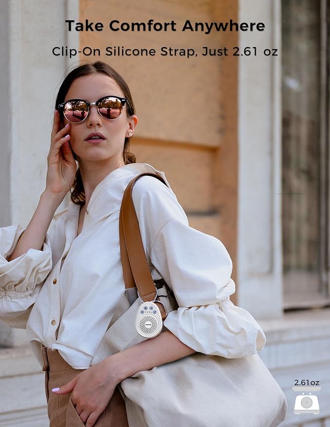 • Portable Sound Machine for Travel: Weighs only 2.61 oz; fits easily into a pocket or bag; silicone loop easily attaches to stroller, backpack, or nightstand; compact and portable for naps, travel, or office use