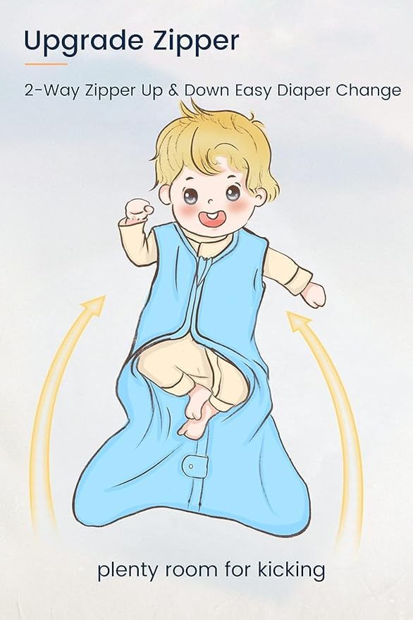 • CRAFTED WITH CARE: Up & down closures Great for middle-of-the-night diaper changes,and upgraded 2-way zipper with zipper guard at both ends prevents accidental scratching. The sleeveless design helps your baby transition from swaddling to having their arms free.