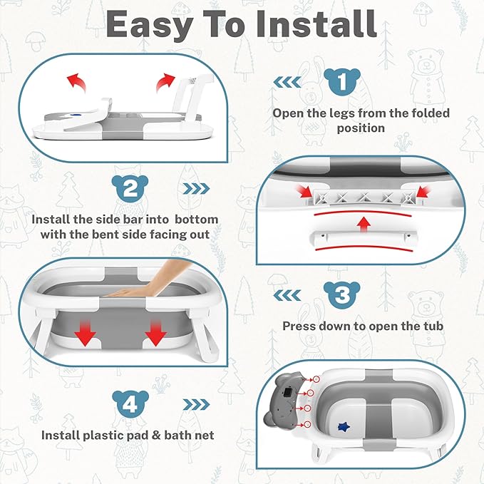 • Compact and Convenient: Designed to save space, baby bathtub is easy to store and clean, fitting seamlessly into your daily routine in bathroom, travel