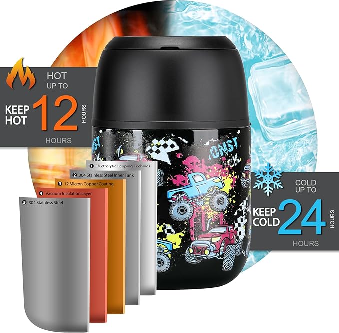 • Joopetalk soup thermo comes with double-wall vacuum insulation technology, that can keep food hot for 12 hours & keep food cold for 24 hours.