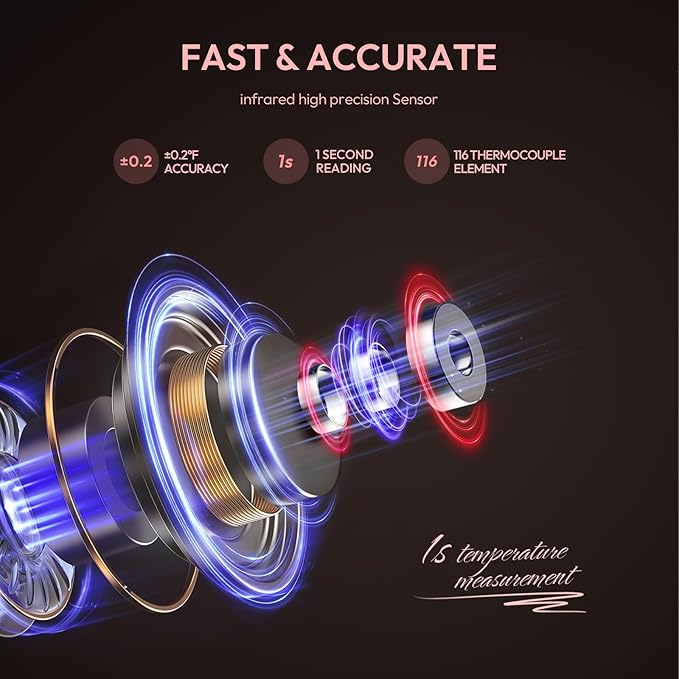 • NO-CONTACT THERMOMETER: This touchless thermometer measures temperature without physical contact, providing a safer and more hygienic experience for all! Fast and accurate temperature readings within 1 second, providing precise measurements for quick and convenient use