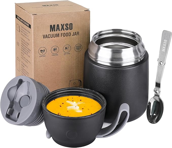 • 【Superior Vacuum Insulation】Keeping your soup hot, it can be an easy thing!!! Durable insulated thermal technology maintains temperatures for longer, interior is constructed entirely of food-grade stainless steel, keeping food hot up to 12 hours or cold for 24. Whether in school or in the office, you can always enjoy hot food and soup during lunch time! It is suitable for babies, toddlers, children, girls, boys, adults and the elderly, perfect for school, office, travel, camping, gym, home.