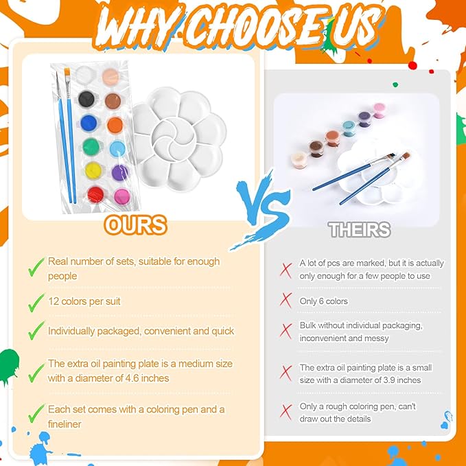 • Wide Applications: the mini acrylic paint set has a wide range of occasions to use, such as classroom, homeschooling, painting class, kindergarten, club, art display, game, graffiti, painting party, birthday party, children's party and more
