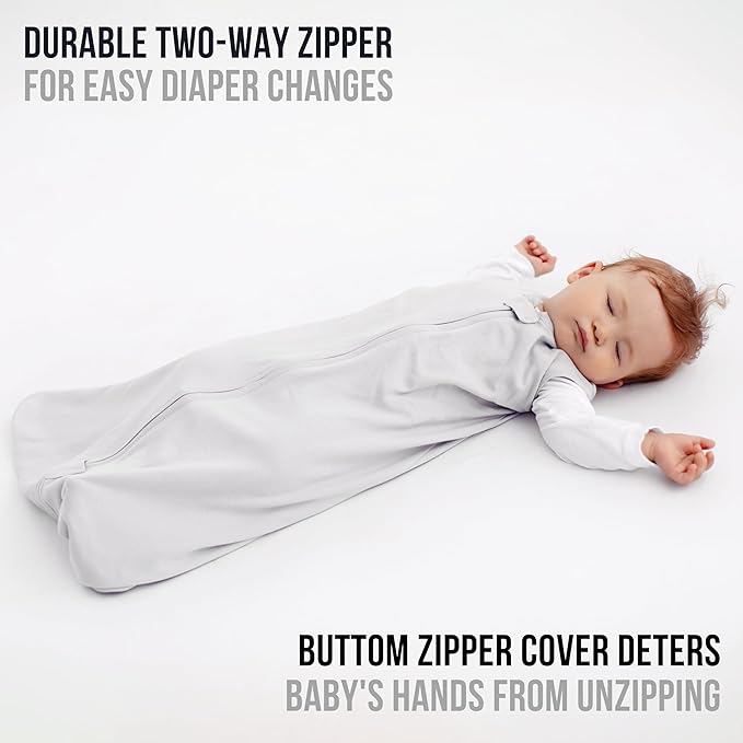 • 【GAME CHANGER FOR MIDNIGHT CHANGES】— Our wearable blankets for babies come with strong, long-lasting 2-way zippers that can be unzipped from the bottom, making diaper changes a breeze. Plus, the two-way zippers at the top eliminate the hassle of fastening them at your baby's chin, adding to the overall ease of use for both parents and babies. This innovative design of our baby sack sleepers is truly a game changer for frequent midnight changes.