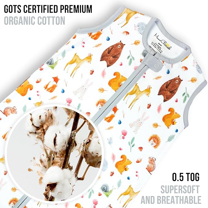 Mama Cheetah Baby Sleep Sack 0.5 TOG, Organic Cotton Baby Wearable Blanket with Two-Way Zipper, Swaddle Transition Baby Sleeping Bag for Newborn Infant Toddler Boy Girl, 0-6 Months