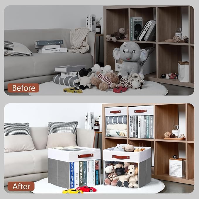 • 【Size Specification】Each clear storage cube bins is 13x15x13 inches, and the storage cubes 13x13x15 set includes 4 boxes, giving you ample storage space. You can easily categorize your belongings based on your habits, and this fabric cubby storage organizer bins will assist you in creating a more organized home.