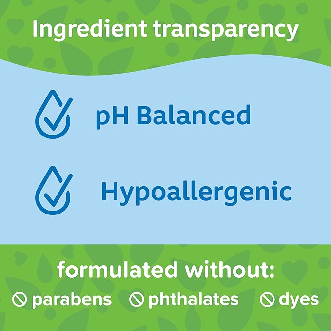 • The hypoallergenic body wash with a No More Tears formula & high-purity glycerin is formulated free of parabens & dyes. The bath wash is gentle enough for baby's sensitive skin & hair & good for the whole family