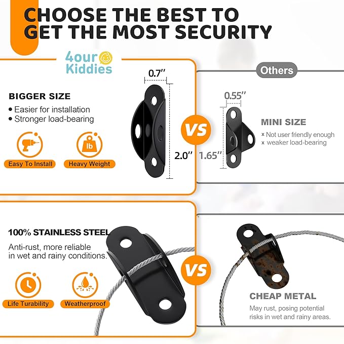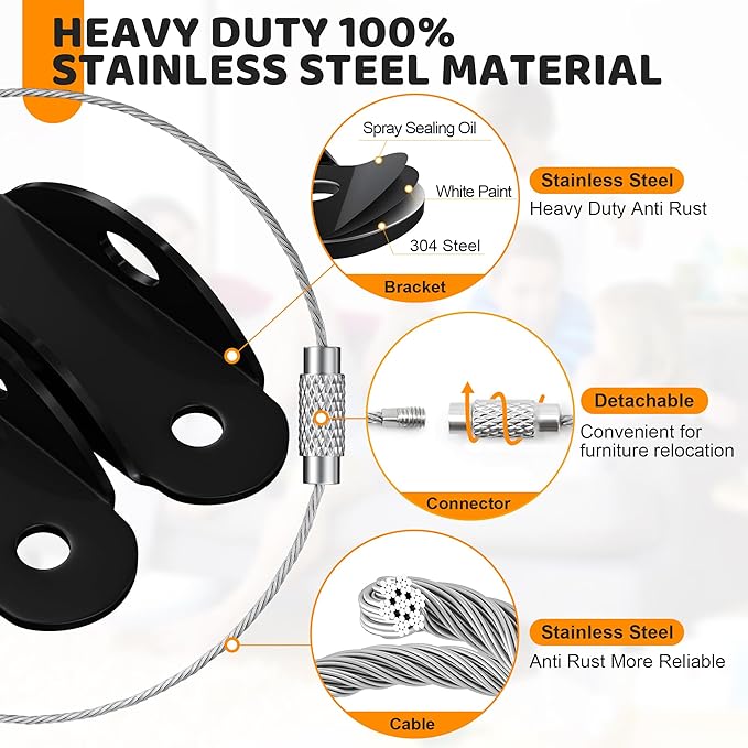 • PREMIUM STAILESS STEEL STRAPS - These furniture straps are made of high-quality stainless steel material, a high resistance to corrosion means that it will never rust during whole life use. And it has a resistance to fire and heat. Whatโ€™s more, the straps are more sturdy and durable than other plastic straps, which will provide a perfect effect on baby safety.