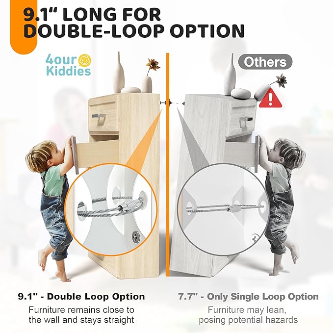• BABY SAFETY - We know how curious children can be. When little ones climb on furniture there is a potential for a tip-over incident. The good news is baby proof furniture anchors can help to keep furniture secure in case your children pull out the dresser drawer to form a ladder and climb onto the dresser for fun. Even with up to 400 pounds of pressure, this anchor keeps furniture upright.
