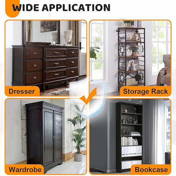 • WIDELY APPLICATION - The wall anchors can be widely used for all kinds of furniture which may cause an unnecessary incident to toddlers, such as bookcases, bookshelves, dressers, cabinets, wardrobes. The anti-tip anchor is detachable that you can detach it anytime if you need to clean behind furniture or remove the furniture.