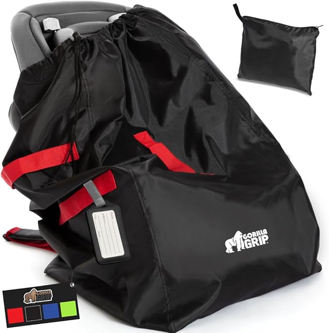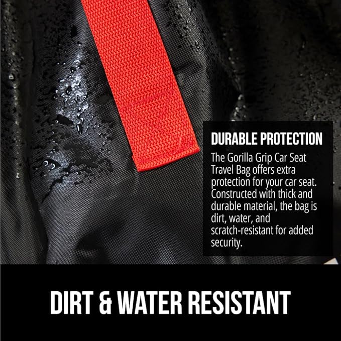 • DURABLE PROTECTION FOR YOUR CAR SEAT: a must for traveling, the Gorilla Grip Car Seat Travel Bag is designed to help protect your car seat while you travel; bag is water, tear and dirt resistant; features drawstring closure that tightly closes around the car seat, helping to protect from dirt, grime and moisture; bag is made of lightweight, yet durable material that can be machine washedโ€‹