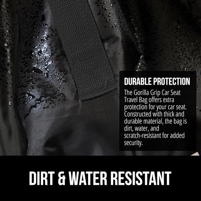 • DURABLE PROTECTION FOR YOUR CAR SEAT: a must for traveling, the Gorilla Grip Car Seat Travel Bag is designed to help protect your car seat while you travel; bag is water, tear and dirt resistant; features drawstring closure that tightly closes around the car seat, helping to protect from dirt, grime and moisture; bag is made of lightweight, yet durable material that can be machine washedโ€‹