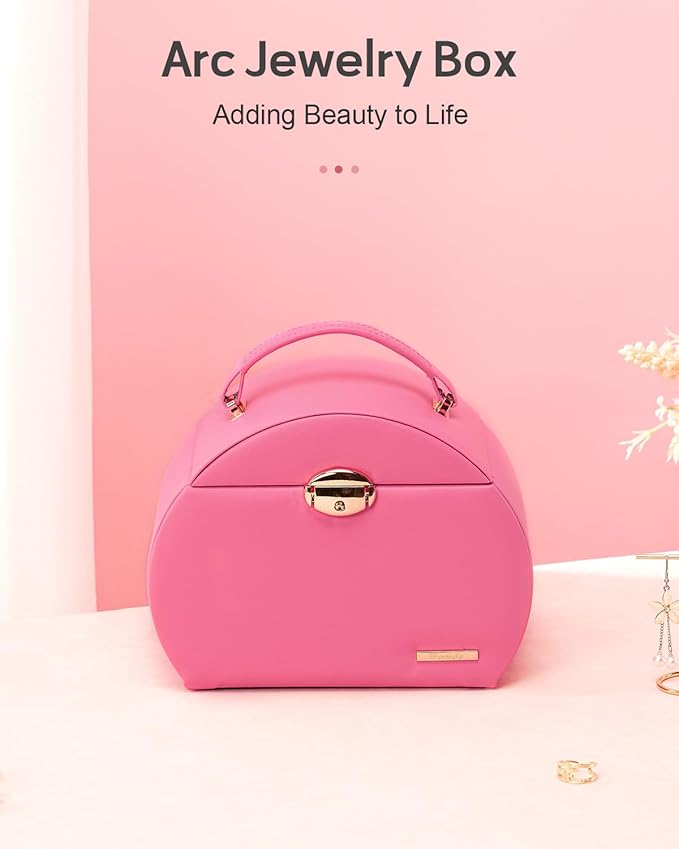 • LOVELY LOOK: Made of Pu leather and soft velvet lining, this pink jewelry box is attractive and lovely, perfect gift for your beloved one.