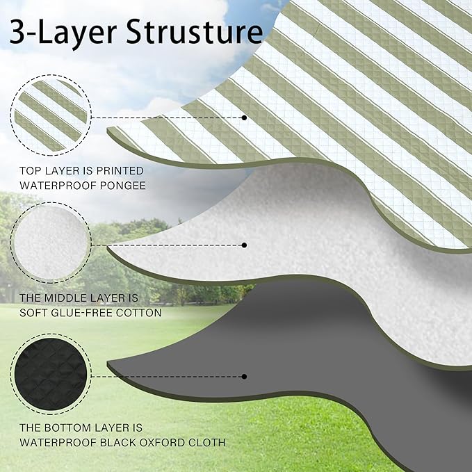 • 【Soft and Durable with 3-Layers】The picnic blanket top layer is printed waterproof pongee, the middle layer is soft glue-free cotton, and the bottom layer is waterproof black Oxford cloth. Perfectly suitable for siting or lying on grass, beach, floor or any kindly of surface, giving you soft and comfortable feelings.