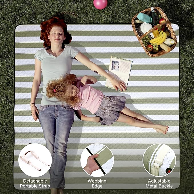 • 【Waterproof & Machine Washable】Outdoor picnic blanket is super easy to clean due to its durable and waterproof backing, easily shake & wipe off dirt, mud, wet grass, and beach sand. And you could put it into washing machine to save your time and free both hands.