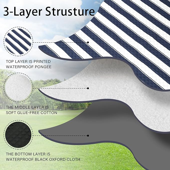 • 【Soft and Durable with 3-Layers】The picnic blanket top layer is printed waterproof pongee, the middle layer is soft glue-free cotton, and the bottom layer is waterproof black Oxford cloth. Perfectly suitable for siting or lying on grass, beach, floor or any kindly of surface, giving you soft and comfortable feelings.