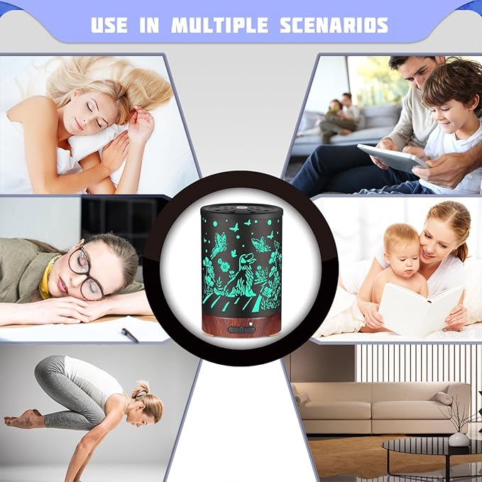 • 【Attractive Design 】The air diffuser for essential oils has 7 color led lights, each color has bright and dim, or turn off all lights for total darkness. Working time: 6 hours in continuous mode.You can choose your prefered color mode to meet your different needs.And It's also a great dragonfly diffuser gifts for women
