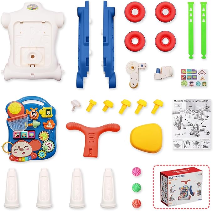 • [Perfect Gift Choose]: 5 in 1 designs, accompany babyโ€™s 5 growing stages from 12 to 60 months, help to exercise kidโ€™s hearing, vision, touch, hand and leg muscles, cultivate their imagination, hand and brain coordination ability. Best indispensable partner for growing babies to explore the world, which is a wonderful birthday present for baby boys
