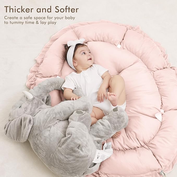 • THICKER & SOFTER: The reversible play mat crafted from premium plush material, offers a fantastic amount of cushion. Its neutral color scheme blends in with your homeโ€™s aesthetic so you can keep it out even after playtime is over.