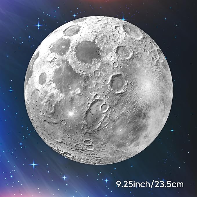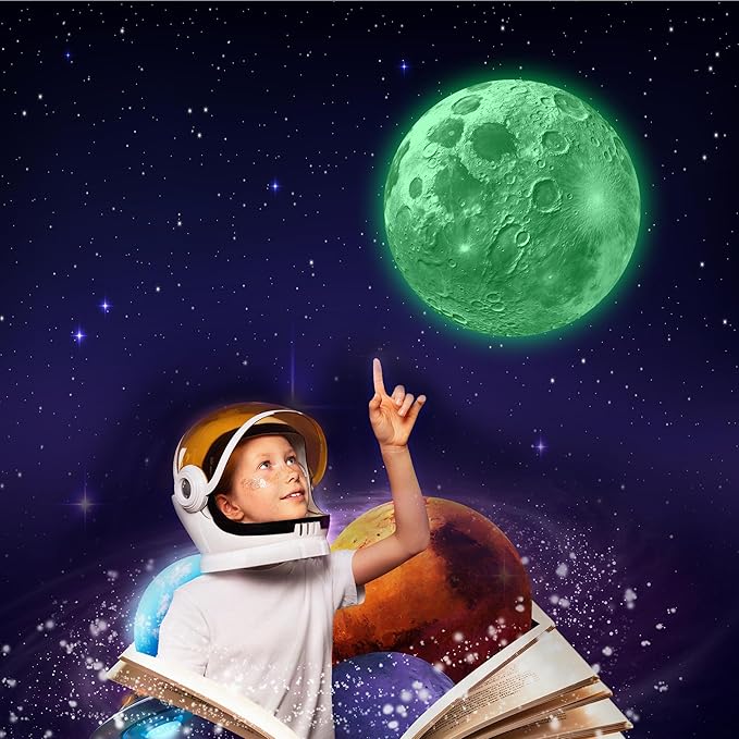 • Robmoda Glow in The Dark Planet - One piece of moon sticker made up of non-toxic, eco-friendly, waterproof, pressure resistant, shock resistant& durable fluorescent PVC. It comes in 23.5 cm (9.25โ€).