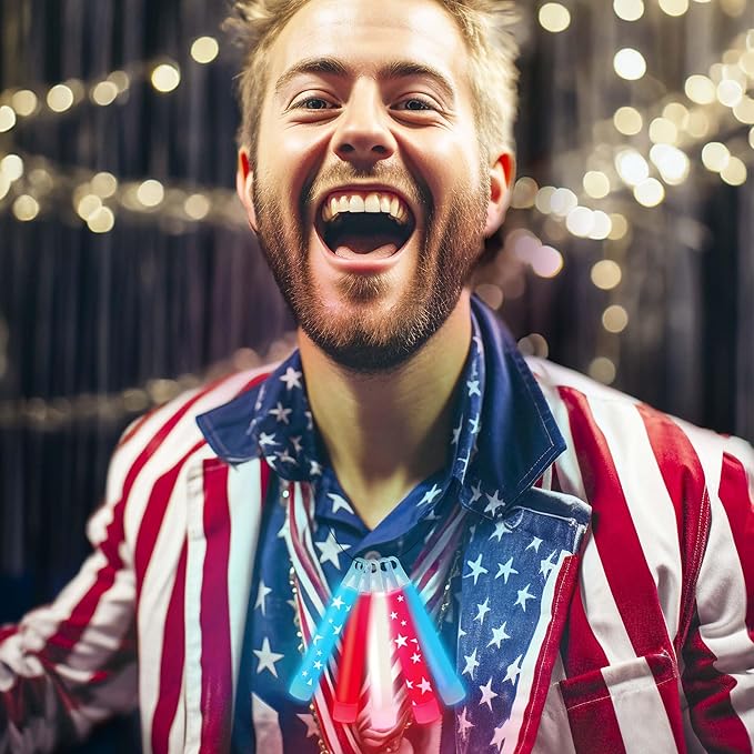 Glow Fever Bulk 100ct Red White Blue 4" Glow Sticks, Glow in The Dark, Light Sticks for 4th of July Party Supplies National Memorial Day Party Favors Fireworks Accessory Game Prizes or Treats