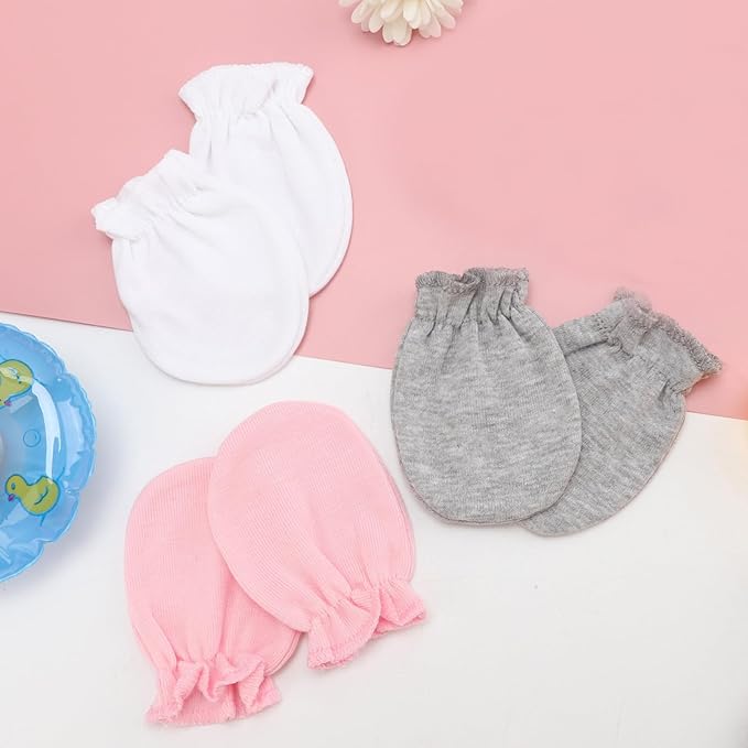 • PACKAGE QUANTITY: You will get 6 pairs of newborn baby mittens in different colors, which are easy to match and offer enough quantity for daily replacement and daily wear, you can also share the cotton mittens with the babies of your friends and family.