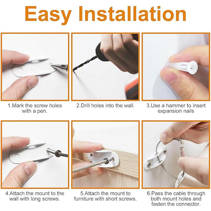 • 【EASY TO INSTALL & QUICKLY RELEASE】: By using anti-tip furniture anchors, tall furniture can be easily secured within minutes. With the screw closure design, this metal wire can also be quickly released, allowing for easy furniture movement and cleaning behind it.