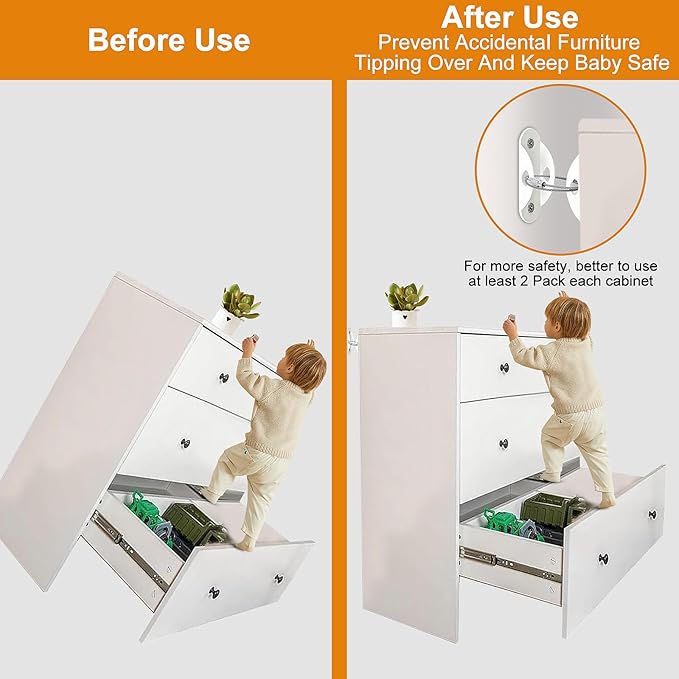 • 【BABY SAFETY】:We know how curious children can be. When toddlers climb on furniture, there is a risk of tipping accidents. The good news is that with the Furniture Anchors, you can help keep your furniture secure and your child safe. Even under pressures of up to 420 pounds, this furniture anchors for baby proofing keeps your furniture upright and secure. So, give yourself peace of mind and invest in this essential baby proofing tool. Protect your precious child with the Furniture Anchors today!