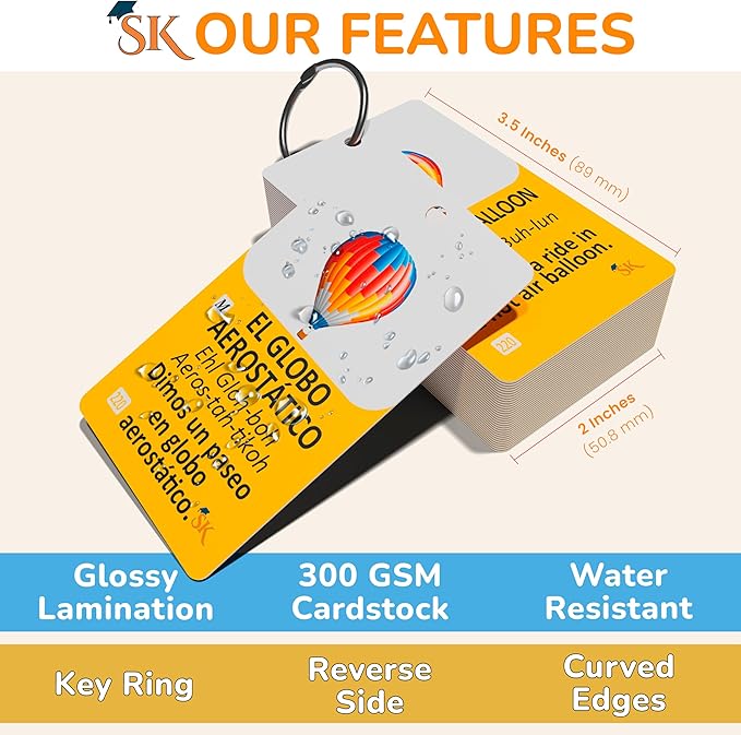 • Durable and Water-Resistant: Made from sturdy, laminated materials, these English-Spanish cards hold up to repeated use at home or on the go. A great tool to help kids & adults learn English through regular study, solo practice, or outdoor learning.