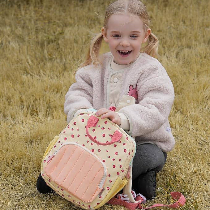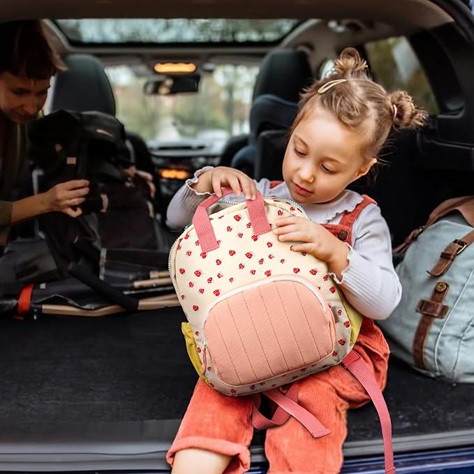 • 🍓【Attractive mini kids backpack】:GAGAKU kids backpack is made of high quality cotton-polyester blend, Made of high quality and harmless materials, it is comfortable and lightweight, so that children can carry it with more peace of mind,personalised backpack for girl boy with pink strawberry print, easy to clean, 11x9x3.5inch, 0.72pounds, perfect for girl aged 2 to 5 years old.