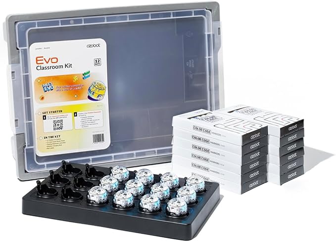 • ROBUST CLASSROOM CODING SOLUTION: The Evo Classroom Kit is a comprehensive solution for grades K-12 STEAM (Science, Technology, Engineering, Arts, Math) education, featuring 12 Evo robots. This kit stands out by offering a complete set of tools for educators to introduce coding in a fun, interactive way, making it superior to other educational robotics kits.
