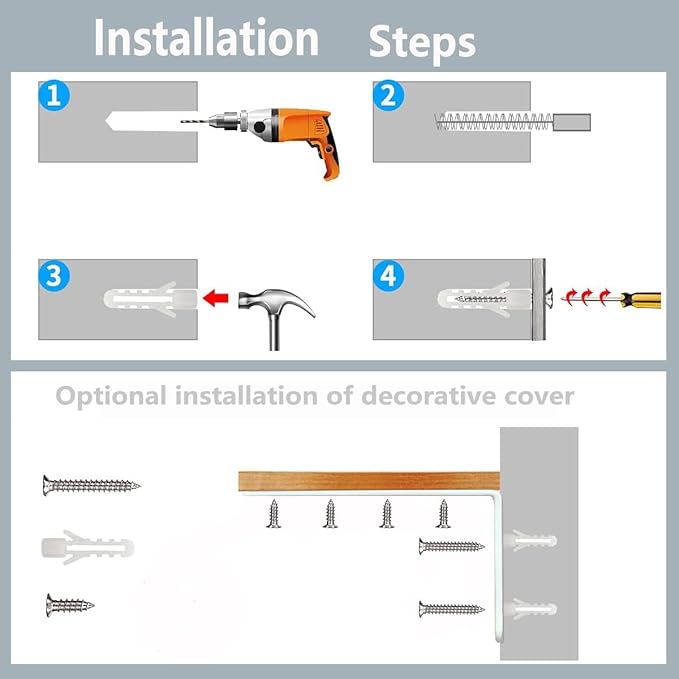 • Package Includes๏ผˆfurniture anchors for baby proofing๏ผ‰: Furniture anchors Use the hardware components included in the package, and baby furniture anchor Package Includes๏ผšAll parts made of high quality steel, includes4 pack Stainless steel bracket, 8 pcs Long wall screws, and 16 pcs Wall anchors 8pack expansion nails plugs y to install with a screwdriver or drill driver.