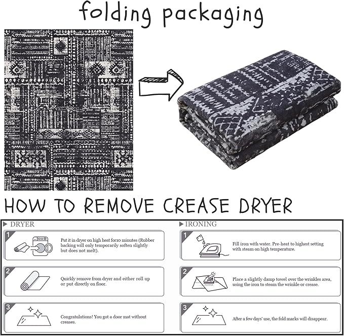 • ✨ WASHABLE RUG: Protecting rugs from spills is nearly impossible, especially you have a child, a pet, or one of the messier hobbies. Use vacuum cleaner, broom, or wipe for daily cleaning to prevent dust and crumbs from setting into the fibers. if excess liquid remains or dirt on the surface of the rug and you want your rug to to be thoroughly clean, Machine wash with cold water on gentle cycle(not to add bleach),air dry or dry on air-only cycle with out heat.