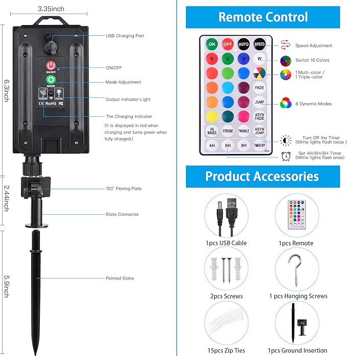 • Special Feature : โ˜…49FT โ˜…150 LEDs โ˜…Solar Powered โ˜…USB Rechargeable โ˜…16 Vibrant Colors โ˜…2 multi-color steady on โ˜…Remote Controlled โ˜…IP68 Waterproof โ˜… 8 Light Modes โ˜… Timer โ˜…Twinkling โ˜…Speed Adjustable โ˜… Portable โ˜…49FT โ˜…150 LEDs โ˜…Solar Powered โ˜…USB Rechargeable โ˜…16 Vibrant Colors โ˜…2 multi-color steady on โ˜…Remote Controllโ€ฆ See more