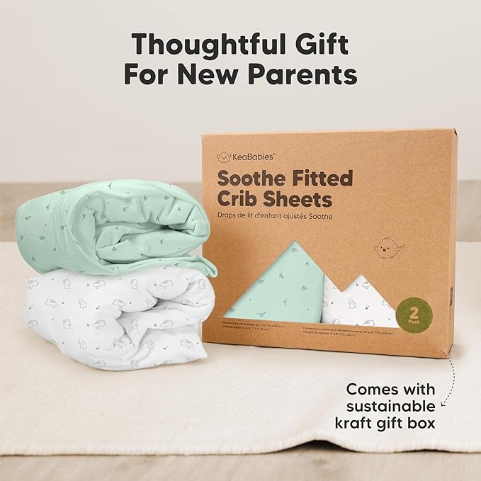 • 2-Pack Baby Crib Sheets - KeaBabies Soothe Fitted Crib Sheets for boys and girls; fit standard crib mattresses (52"x28" with height 3" to 8") perfectly, offering your baby a safe and restful sleep.