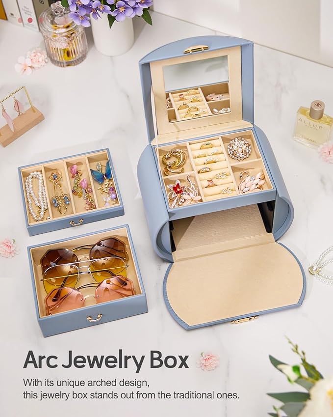 • AMPLE STORAGE SPACE: Suitable for girls or women to organize her treasure, such as necklaces, chains, bracelets, rings, earrings, cufflinks, hairpins, sunglasses and other jewelries.
