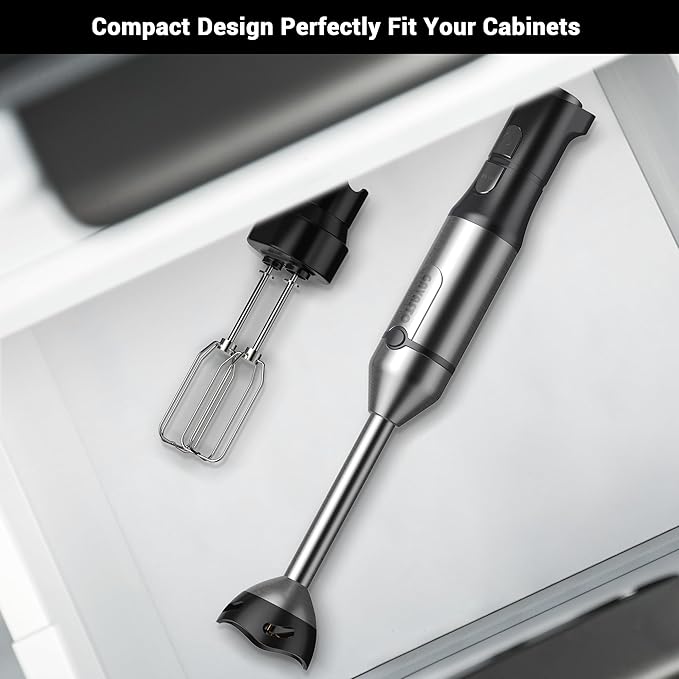 • Complete Kitchen Accessories Included: Your package comes with a snap-on Blending attachment, a twist-and-lock Chopper featuring a removable blade, and a pair of Egg Beaters. The versatile chopper doubles as a mini food processor, ensuring your kitchen tasks are both enjoyable and effortless with all the essential accessories included.