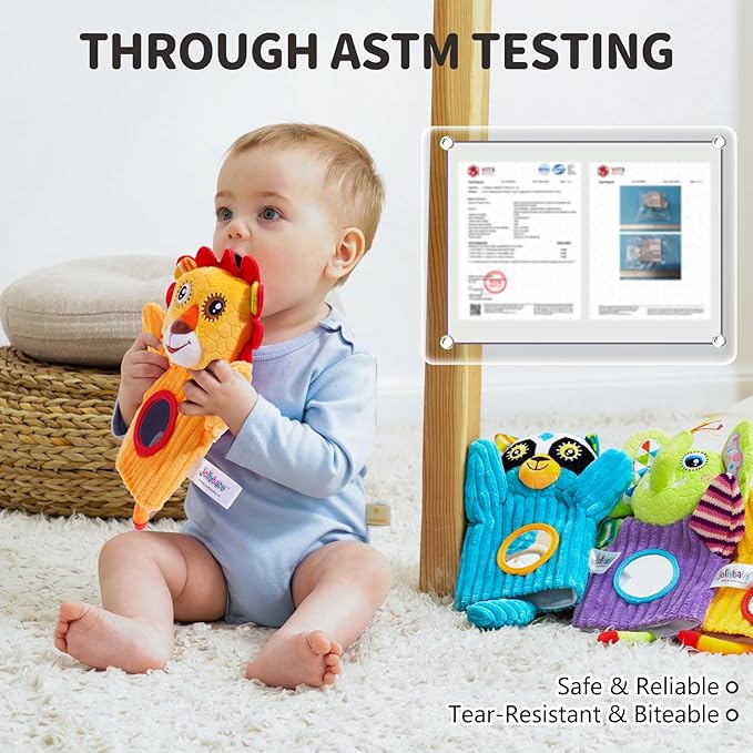 • SENSORY HAND PUPPETS: Jollybaby plush stuffed animal hand puppets toys are equipped with built-in bells and a funhouse mirror. The bells produce a gentle jingling sound that will engage your baby's hearing. The distorting mirror adds an element of surprise and self-discovery, fostering your kid¡¯s sense of curiosity and self-exploration. Our sensory doll toys are made with skin-friendly fabrics materials, helps to enhance your baby's sense of touch and promotes sensory development.