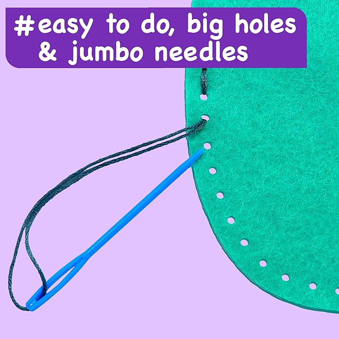 • 🌟No Mess, Easy-to-Follow Instructions🌟This sticker kit provides a mess-free crafting experience, including Step-by-step instructions and basic sewing skill brief, pre-punched holes, pre-cut shapes and jumbo plastic needles that prioritize children's safety without sacrificing their joy.