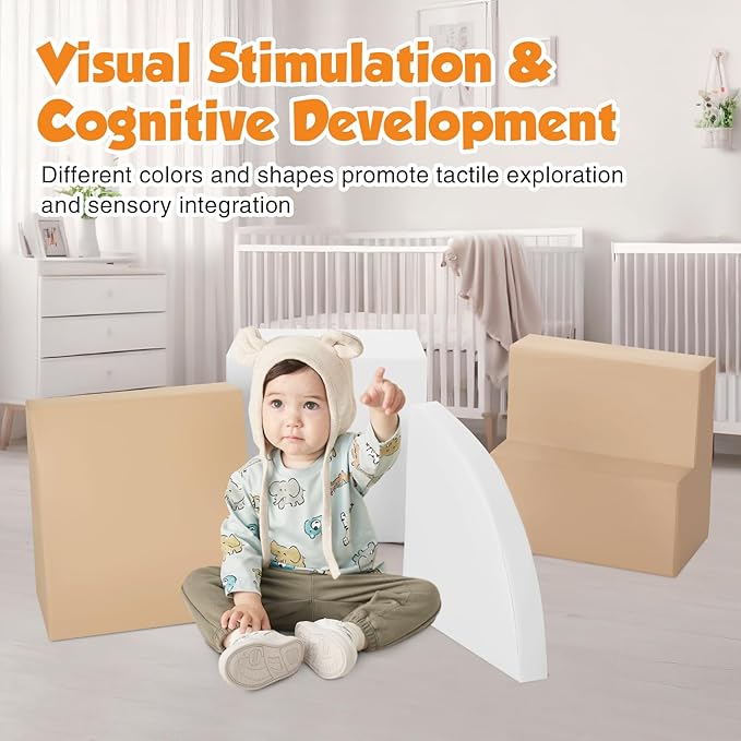 • Premium Climbing Experience: Toddler climbing toys features a variety of shapes for endless fun and imaginative play. Perfect for toddlers ages 3+, kids can stack and swap shapes as they climb, slide and enjoy the excitement of the toy. Baby climbing blocks consists of 1 coffee stairs, 1 coffee slide, 1 white half-moon, and 1 white square