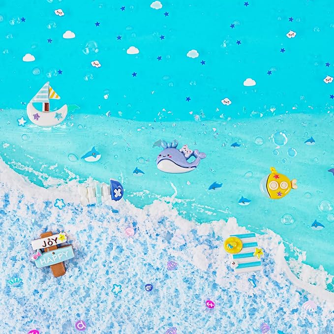 • 🐋【Gradual Blue & Various Add-ins】This blue ocean slime kit is ocean themed, graduating from white to dark blue and contains 8 slime add-ins. Whether you want to make crunchy slime, fluffy snowflake slime or smooth butter slime, paired with a variety of adorable slime charms to create your own one-of-a-kind slime creations, this kids slime has everything you need.