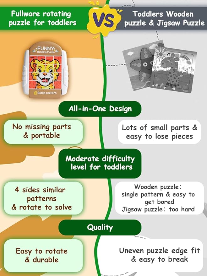 • A HANDY TOY FOR OUTINGS - Whether in the car or at a restaurant, our compact Rotating Puzzles can be carried along and keep children quiet and occupied. Moreover, there is no risk of missing pieces after playing with this all-in-one design puzzle!