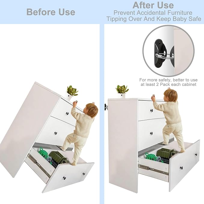 • 【BABY SAFETY】: When toddlers climb on furniture, there is a risk of tipping accidents. The good news is that with the Furniture Anchors, you can help keep your furniture secure and your child safe. Even under pressures of up to 420 pounds, this furniture anchors for baby proofing keeps your furniture upright and secure.