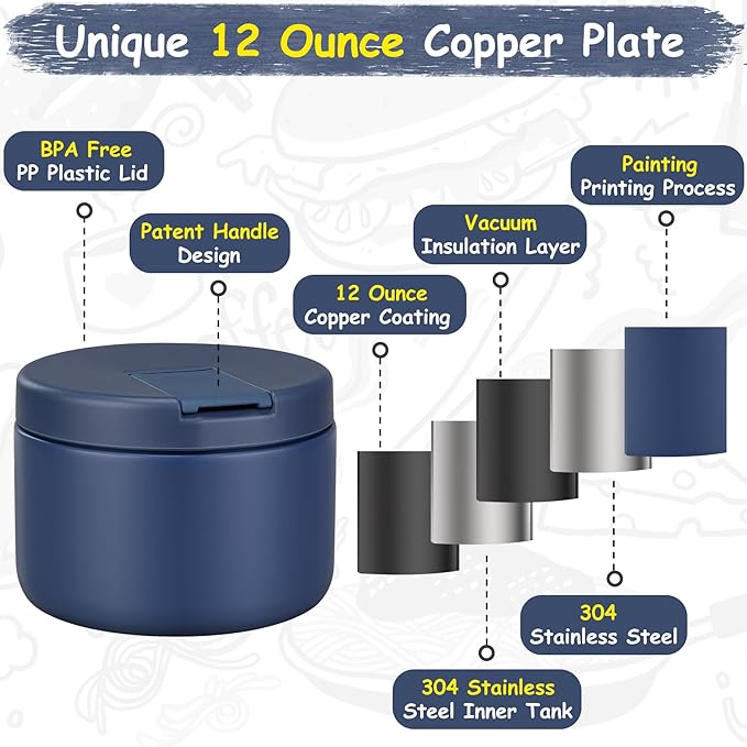 • Upgrade to 12 OZ Capacity: Bigger capacity can hold more food for children. The stainless steel soup thermal bottle is a double wall, with a vacuum in the middle, has good insulation performance, with a wide mouth design that is easier to clean.
