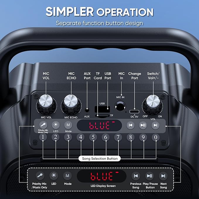 • Great Gift Option: Karaoke machine with 2 microphones is the perfect gift for any holiday, combining fun and functionality. Whether it's a birthday, Easter, Christmas, Valentine's Day, Halloween, Thanksgiving or New Year, this karaoke machine brings joy and affection through music and song. Portable karaoke speaker with 2 wireless microphones is a great gift that brings people together and makes lasting memories