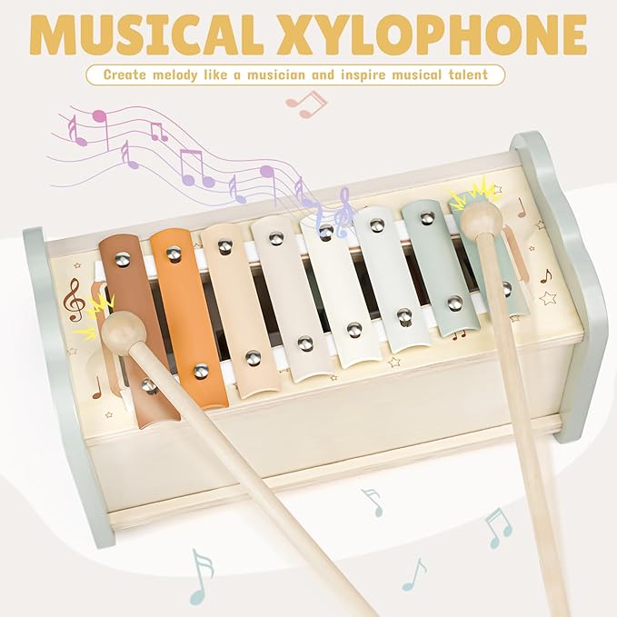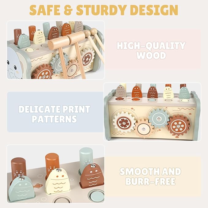 • Montessori-Inspired Learning for Toddlers - Nurture your child's early development with this thoughtfully designed toy set. The mole-tapping game strengthens motor skills and reflexes, while the magnetic fishing game sharpens hand-eye coordination. The xylophone introduces the joy of music, and the gear-spinning activity encourages problem-solving and logical thinking. Perfect for curious babies aged 12 months and up!
