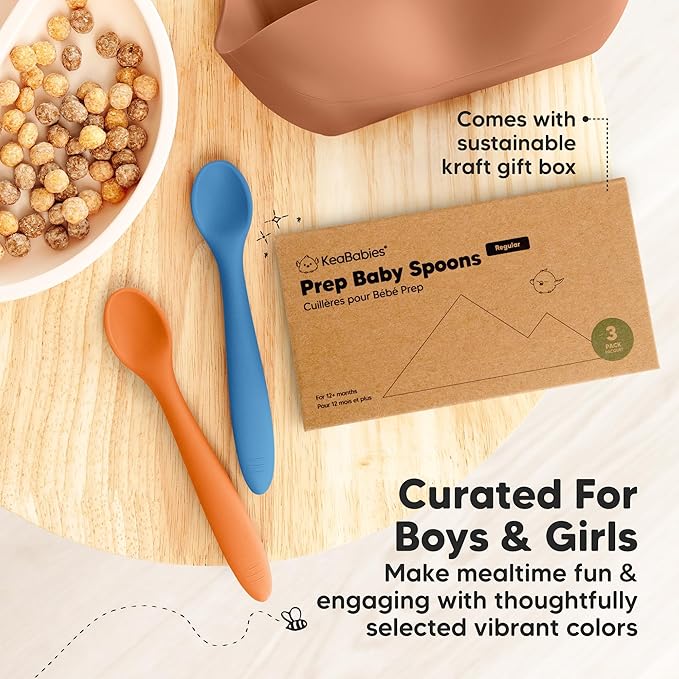 • Safer Silicone - KeaBabies 3-Pack Prep Silicone Baby Spoons Set is made from 100% food-grade, BPA-free silicone. With a topple-free handle and comfort sized scoop, these toddler spoons help BLW toddlers build confidence as they learn self-feeding.